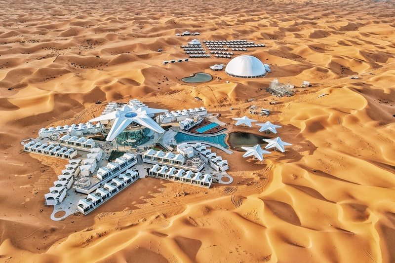 5天行程中,游客可以激情参与沙漠越野、攀岩、滑沙竞速、黄河飞索、沙漠徒步、沙漠越野挑战、扎草格体验治沙等特色体育项目,可以沉浸体验星空露营、日落观景、篝火晚会等特色文旅项目,可以深度感受由绿皮火车改造的旅馆、星星酒店、帐篷营地等特色住宿项目,可以尽情品尝中卫蒿子面、海原面包羊羔肉、荞面搅团、烤全羊等特色美食。