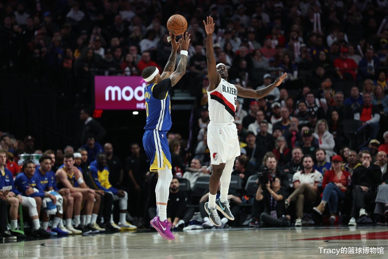 下半场易边再战,第三节上来追梦先投进一个,库里三分续上。双方各自罚球,波斯特三分也有,巴特勒两罚两中以后勇士追到7分。卡马拉和夏普连续两记三分重新拉开,科尔暂停。回到比赛,还是库里站出来打2+1止血,科尔挑战小佩顿三分犯规成功。勇士几乎全靠库里一个人苦苦支撑,卡马拉成为奇兵,一个人连砍8分帮助开拓者领先到了17分。穆迪三分止血一下,巴特勒和波杰姆连续造犯规罚球,三节结束开拓者103-91领先12分。
