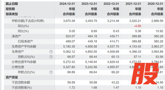 纵观近年五年该行盈利表现,除了2023年营业收入与净利润出现负增长后,2024年增幅止跌回升,其中营业收入增速9.46%,创五年最高水平;净利润五年基本维持在36亿-38亿之间,2020年至2024年分别为36.71亿、37.06亿、38.29亿、37.79亿元,增速分别为3%、0.95%、3.34%、-4.6%、3.43%。